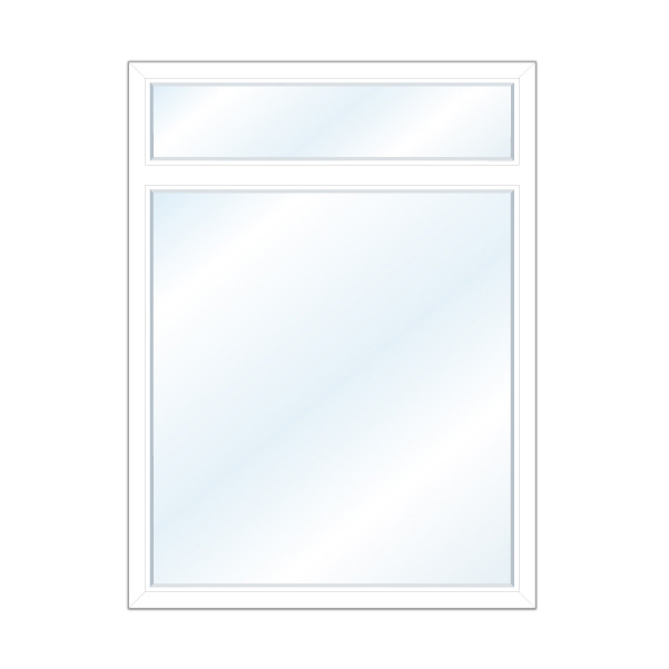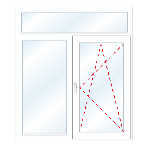 OKNO DWUSKRZYDŁOWE, LEWE ROZWIERNO-UCHYLNE W LEWĄ STRONĘ, PRAWE NIEOTWIERALNE, SZKLONE BEZPOŚREDNIO W RAMIE, NADSTAWKA UCHYLNA SZKLONA W SKRZYDLE