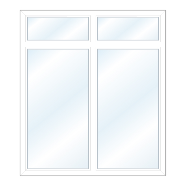OKNO DWUSKRZYDŁOWE, LEWE NIEOTWIERALNE, SZKLONE W RAMIE, NADSTAWKA NIEOTWIERALNA SZKLONA BEZPOŚREDNIO W RAMIE, PRAWE NIEOTWIERALNE, SZKLONE W RAMIE, NADSTAWKA NIEOTWIERALNA SZKLONA BEZPOŚREDNIO W RAMIE.