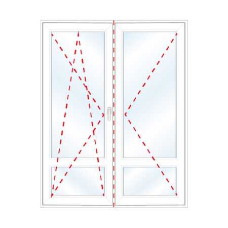 Drzwi balkonowe, z poprzeczką, lewe rozwierne w lewą stronę, prawe rozwierno-uchylne ze słupkiem ruchomym