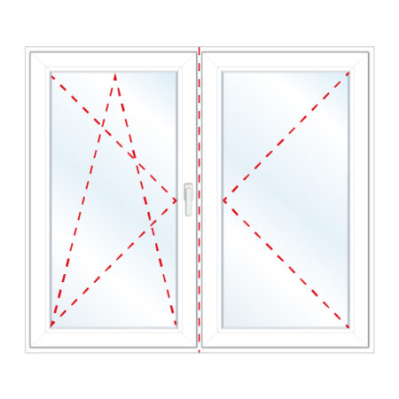 Okno dwuskrzydłowe, lewe rozwierne w lewą stronę, prawe rozwierno-uchylne w prawą stronę, słupek stały