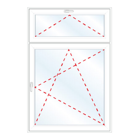 Okno rozwierne w prawą stronę, nieuchylne, nadstawka uchylna szklona w skrzydle.